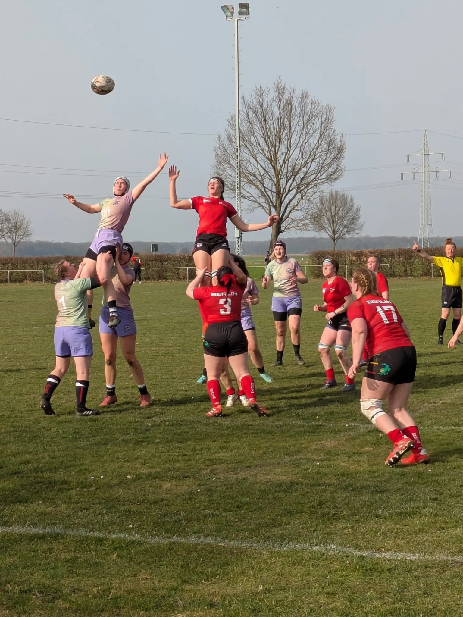 Coach Turner rang the changes and with a full replacement front row Berlin began to gain dominance at set pieces too, forcing 2 scrum penalties and stealing multiple Baden lineouts. In open play Berlin kept their foot on the gas and looked eager to score, perhaps too eager as first full back Mongin was bundled into touch just short of the line then Brennan was tackled just short, looking for her Hattrick. Finally after Ziffels who’d enjoyed an industrious day at scrum half was tackled inches short of the line, it was captain Dompert who dotted down for the final score.